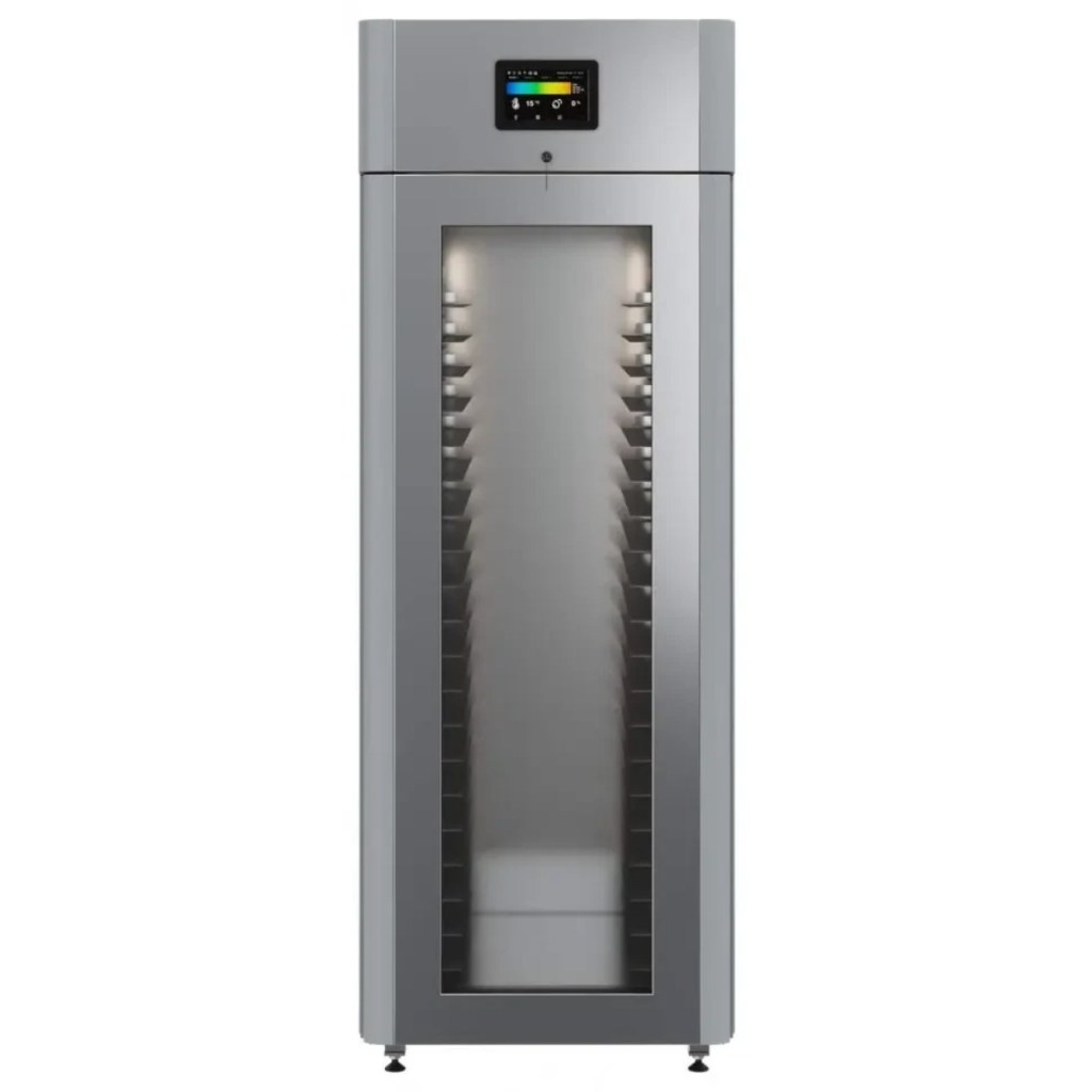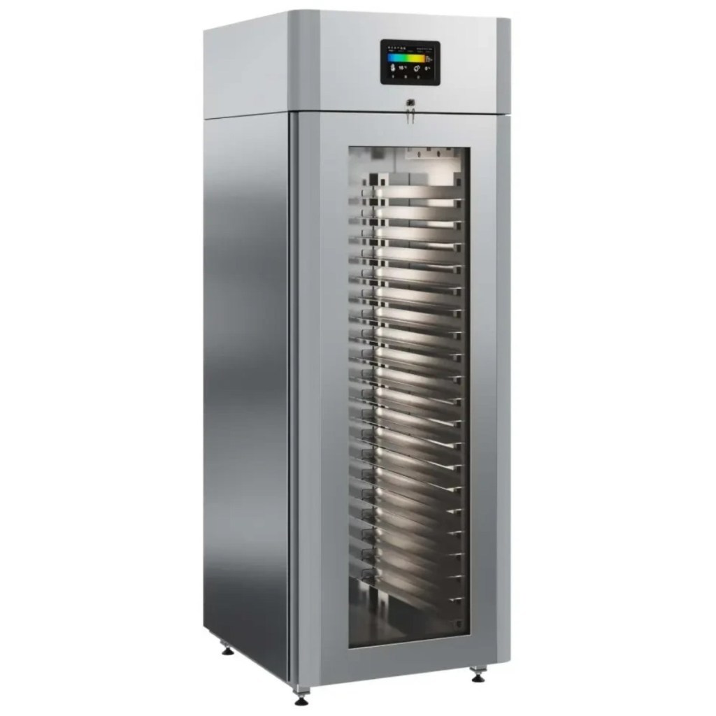 Каталог оборудования Холодильное оборудованиеШкафы холодильныеСпециализированные холодильные шкафыШкаф холодильный для хлебопекарных производств Polair CS107-Bakery Br со стеклом (Тип 1) Шкаф холодильный для хлебопекарных производств Polair CS107-Bakery Br со стеклом (Тип 1) Код товара: 062-622 Поделиться: WhatsAppTelegram СравнитьДобавить в КПВ избранное 0 414 545 ₽ В корзину 0 шт Под заказСамовывоз сегодня бесплатно Взять в кредит Купить в лизинг Получить консультацию в WhatsApp Описание Характеристики Отзывы 0 Инструкции 5 Шкаф холодильный для хлебопекарных производств Polair CS107-Bakery Br со стеклом (Тип 1) предназначен для создания оптимальных условий хранения и расстойки заготовок из теста на предприятиях общественного питания и торговли. Цельнозаливной корпус выполнен из нержавеющей стали, дверь — стеклопакет. Оборудование стабильно работает при температуре окружающей среды до +40 °C. В комплект входят 20 пар направляющих размером 400×600 мм. Особенности: Широкий функционал: охлаждение, замедление ферментации, хранение, регенерация, брожение и расстойка Динамическое охлаждение с мягким обдувом без заветривания и автоматическая оттайка с системой испарения конденсата Панель управления с 5" дисплеем: контроль температуры, влажности (регулируется от 60 до 95 %), скорости вентилятора и времени, а также возможность создания и сохранения программ Встроенный ультразвуковой увлажнитель (необходима система водоочистки и канализация) Эргономичная конструкция: верхнее расположение агрегата, распашная дверь со стеклопакетом, механизм самозакрывания, педаль для открытия, съёмные направляющие и легко заменяемый уплотнитель с магнитной вставкой Дополнительная защита: пластиковый бордюр по периметру камеры для предотвращения повреждений от тележек Простота ухода: штампованное углубление в дне корпуса для сбора загрязнений Экологичный хладагент R290 и энергоэффективность: потребляемая мощность — 0,55 кВт (охлаждение), 0,9 кВт (нагрев) Толщина стенки корпуса — 43 мм Polair CS107-Bakery Br со стеклом (Тип 1) — надёжный и многофункциональный шкаф, который обеспечивает полное управление процессами брожения и расстойки теста. Современная система охлаждения и увлажнения, продуманная конструкция и удобное управление делают его оптимальным решением для пекарен и кондитерских, стремящихся к стабильному качеству и высокой производительности.Изображение товара, представленного на фото, может отличаться от его фактического вида. Показать все Габаритные размеры697×1005×1960 ммДиапазон рабочей температурыот -10 до +40 °CДлина697 ммШирина1005 ммВысота1960 ммОбъём700 лКол-во дверей1 Тип двериСтеклянная Уровень влажностиот 60 до 95 %Направляющие под EN 40*6020 Расстояние между направляющими60 ммХолодильный агрегатВстроенный Тип оттайкиАвтоматическая Тип охлажденияДинамический ПодсветкаЕсть ХладагентR290 Вес нетто180 кгБрендPolairВсе специализированные холодильные шкафы Из нержавейки Оставить отзыв Еще никто не оставил отзыв на этот товар Схема POLAIR CS107 Bakery Br.jpgИнструкция на POLAIR CS107 Bakery Br.pdfБрошюра на хлебопекарное оборудование POLAIR.pdfДекларация о соответствии.pdfСертификат соответствия.pdf Похожие товары Перейти в каталог Под заказ 389 300 ₽ Шкаф холодильный для вызревания мяса Polair CS107 Meat (Тип 1) Под заказ 248 490 ₽ Шкаф холодильный для вызревания мяса и сыра Carboma M700GN-1-G-MHC 9006 Под заказ 373 915 ₽ Шкаф холодильный для вызревания