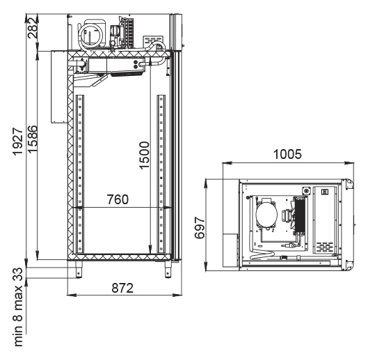 Каталог оборудования Холодильное оборудованиеШкафы холодильныеСпециализированные холодильные шкафыШкаф холодильный для вызревания сыра Polair CS107 Cheese полки нерж., со стеклом Шкаф холодильный для вызревания сыра Polair CS107 Cheese полки нерж., со стеклом Код товара: 062-630 Поделиться: WhatsAppTelegram СравнитьДобавить в КПВ избранное 0 397 800 ₽ В корзину 0 шт Под заказСамовывоз сегодня бесплатно Взять в кредит Купить в лизинг Получить консультацию в WhatsApp Описание Характеристики Отзывы 0 Инструкции 5 Шкаф холодильный для вызревания сыра Polair CS107 Cheese полки нерж., со стеклом предназначен для создания оптимальных условий хранения и дозревания твердых и полутвердых сыров на предприятиях общественного питания и торговли. Монолитный цельнозаливной корпус изготовлен из нержавеющей стали снаружи и изнутри (кроме задней стенки), что обеспечивает высокую прочность и долговечность шкафа. Дверь выполнена из стеклопакета. Оборудование рассчитано на работу при температуре окружающей среды до 40 °С. Особенности: Верхнее расположение агрегата Многофункциональная русифицированная контрольная панель с 5-дюймовым дисплеем Возможность создания и сохранения собственных программ в памяти электронного блока Четыре перфорированные полки из нержавеющей стали Встроенный ультразвуковой увлажнитель (требуется подключение к системе очищенной воды и централизованной канализации) Распашная дверь с заливной теплоизоляцией Заменяемый уплотнитель двери с магнитной вставкой Встроенная ручка для удобства открытия Отключаемая внутренняя LED-подсветка Штампованное углубление в дне корпуса для удобства очистки Педаль для бесконтактного открывания двери Регулировка уровня влажности от 60% до 95% Максимальная нагрузка на полку — 40 кг Толщина стенки корпуса — 43 мм Polair CS107 Cheese полки нерж., со стеклом — надежный и функциональный холодильный шкаф, обеспечивающий оптимальные условия для хранения и дозревания твердых и полутвердых сыров. Благодаря прочному корпусу, точному контролю температуры и влажности, а также современным технологиям увлажнения и управления, оборудование способствует сохранению качества и вкусовых характеристик продукции, повышая эффективность работы предприятий питания и торговли.Изображение товара, представленного на фото, может отличаться от его фактического вида. Показать все Габаритные размеры697×1005×1960 ммДиапазон рабочей температурыот -2 до +30 °CДлина697 ммШирина1005 ммВысота1960 ммОбъём700 лКол-во дверей1 Тип двериСтеклянная Количество полок4 штДопустимая нагрузка на полку40 кгУровень влажностиот 60 до 95 %Холодильный агрегатВстроенный Тип оттайкиАвтоматическая Тип охлажденияДинамическое ПодсветкаЕсть ХладагентR290 Вес нетто160 кгВес брутто190 кгБрендPolairВсе специализированные холодильные шкафы Из нержавейкиВсе специализированные холодильные шкафы Стеклянная дверь Оставить отзыв Еще никто не оставил отзыв на этот товар Схема POLAIR CS107 Cheese.jpgИнструкция на POLAIR CS107 Cheese.pdfБрошюра на POLAIR CS107 Cheese.pdfДекларация о соответствии.pdfСертификат соответствия.pdf Похожие товары Перейти в каталог В наличии 397 290 ₽ Шкаф холодильный для хлебопекарных производств Polair CS107 Bakery Br (Тип 1) Под заказ 282 471 ₽ Шкаф холодильный для вызревания мяса и сыра Carboma M700GN-1-G-MHC 0430 Под заказ 389 300 ₽ Шкаф холодильный для вызревания мяса Polair CS107 Meat черный, со стеклом (Тип 1) Под заказ 414 545 ₽ Шкаф хол