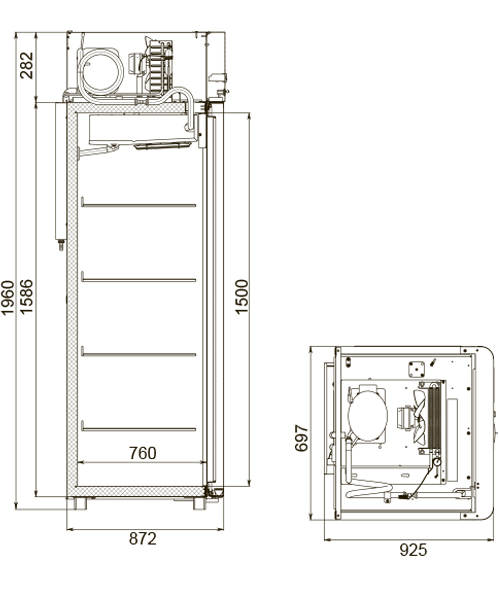 Каталог оборудования Холодильное оборудованиеШкафы холодильныеШкафы холодильные универсальные от -5 до +5 °СШкаф холодильный универсальный Polair CV107-Sm Alu Шкаф холодильный универсальный Polair CV107-Sm Alu Код товара: 062-611 Поделиться: WhatsAppTelegram СравнитьДобавить в КПВ избранное 0 129 370 ₽ В корзину 0 шт Под заказСамовывоз сегодня бесплатно Взять в кредит Купить в лизинг Получить консультацию в WhatsApp Описание Характеристики Отзывы 0 Инструкции 4 Шкаф холодильный универсальный Polair CV107-Sm Alu предназначен для демонстрации и надежного хранения продуктов на предприятиях общественного питания и торговли. Цельнозаливной корпус выполнен из стали с полимерным покрытием и оснащен алюминиевыми профилями, что обеспечивает высокую прочность конструкции и долговечность, а также подчеркивает современный премиальный дизайн. Шкаф работает при температуре окружающей среды до 40 °С и влажности воздуха до 80%. Особенности модели: Контрольная панель с быстрым доступом к настройкам, удобным возвратом в предыдущее меню и возможностью полного отключения без отдельной кнопки. Жидкокристаллический дисплей для наглядного отображения параметров. Клапан Шредера для обслуживания холодильной системы. Компенсационный клапан с ПЭНом обогрева, ПЭНы обогрева трубки слива конденсата и дверного проема — предотвращают образование льда и обеспечивают надежную работу. Распашной тип двери с возможностью изменения стороны открывания, что делает установку более гибкой. Полностью интегрированные ручки, удобные и стильные. Эластичные уплотнители с магнитными вставками для максимальной герметизации. Внутренняя подсветка вынесена на нижнюю часть фронтальной панели. Микропереключатель для автоматического отключения вентилятора и включения подсветки при открытии дверей. Регулируемые по высоте ножки для устойчивости на любом полу. Педаль для удобного открывания без рук. Замок для защиты содержимого. Высокая допустимая нагрузка на полку — до 40 кг. Размер полки: GN 2/1 (530×650 мм). Толщина стенки корпуса — 43 мм, что обеспечивает отличную теплоизоляцию. Polair CV107-Sm Alu — это функциональный и надежный холодильный шкаф с современным дизайном, который обеспечивает максимальную сохранность и удобный доступ к продуктам. Отлично подходит для ресторанов, кафе и магазинов, где важны надежность, стиль и энергоэффективность.Изображение товара, представленного на фото, может отличаться от его фактического вида. Показать все Габаритные размеры697×925×1960 ммДиапазон рабочей температурыот -5 до +5 °CДлина697 ммГлубина925 ммВысота1960 ммОбъём700 лРазмер полки530×650 ммКоличество полок4 штКоличество дверей1 штТип оттайкиАвтоматическая Тип охлажденияДинамическое Тип управленияЭлектронное Материал корпусаНержавеющая сталь Тип двериМеталлическая ЗамокЕсть Способ открыванияРаспашные ХладагентR290 Холодильный агрегатВстроенный Расположение агрегатаВерхнее Потребление электроэнергии в сутки4,5 кВтПотребляемая мощность0,4 кВтНапряжение220 ВГабариты в упаковке800×1000×2150 ммВес нетто113 кгВес брутто138 кгБрендPolairВсе шкафы холодильные универсальные от -5 до +5 °С Из нержавейки Оставить отзыв Еще никто не оставил отзыв на этот товар Схема POLAIR CV107-Sm.jpgИнструкция на POLAIR CV107-Sm.pdfДекларация о соответствии.pdfСертификат соответствия.pdf Похожие товары Перейти в каталог Под заказ 209 810 ₽ Шкаф холодильный универсальный Arkto 