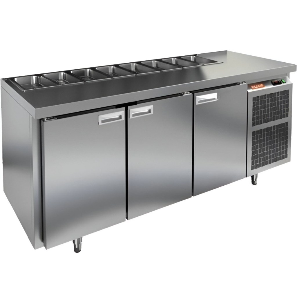 Каталог оборудования Холодильное оборудованиеСтолы охлаждаемыеСтолы холодильные для салатовСтол холодильный для салатов HiCold SL1-111GN (1/3) О без крышки Стол холодильный для салатов HiCold SL1-111GN (1/3) О без крышки Код товара: 064-521 Поделиться: WhatsAppTelegram СравнитьДобавить в КПВ избранное 0 163 612 ₽ В корзину 0 шт Под заказСамовывоз сегодня бесплатно Взять в кредит Купить в лизинг Получить консультацию в WhatsApp Описание Характеристики Отзывы 0 Инструкции 2 Стол холодильный для салатов HiCold SL1-111GN (1/3) О без крышки предназначен для предприятий общественного питания и торговли. Он обеспечивает хранение и подготовку ингредиентов для пиццы, салатов и других блюд, а также охлаждение и кратковременное хранение скоропортящихся продуктов. Модель сочетает рабочую поверхность и холодильный объем, позволяя повару иметь все необходимые компоненты под рукой. Корпус и столешница выполнены из нержавеющей стали, обеспечивая надежность и долговечность. Особенности: Динамическая система охлаждения — равномерное распределение температуры внутри холодильного объема. Автоматическая оттайка — упрощает уход за оборудованием. Электронная панель управления — точная настройка температуры и режимов работы. 3 вместительные внутренние полки формата GN 1/1 — удобное хранение ингредиентов. Автоматические доводчики дверей с фиксатором открытого положения — комфорт и безопасность работы. Легкозаменяемые магнитные уплотнители — простота обслуживания. Открытая агрегатная часть — облегчает доступ для обслуживания. Регулируемые по высоте ножки — адаптация к рабочей поверхности. Столешница без борта и без крышки, толщина столешницы и теплоизоляции 50 мм — надежная защита и удобство работы. Размер полки: 530×325мм (GN 1/1) Максимальная глубина гастроемкостей: 100 мм HiCold SL1-111GN (1/3) О без крышки — многофункциональный и надежный стол для профессиональной кухни. Обеспечивает удобство работы, эффективное охлаждение и безопасное хранение продуктов. Мобильная модификация с колёсами позволяет легко перемещать стол, что делает его идеальным для ресторанов, кафе и пиццерий.Изображение товара, представленного на фото, может отличаться от его фактического вида. Показать все Габаритные размеры1835×700×850 ммДиапазон рабочей температурыот +2 до +10 °CРасположение агрегатаБоковое Материал столешницыНержавеющая Тип столаС дверьми Тип двериГлухая Объём505 лКоличество дверей3 штТип гастроемкостейGN 1/3 Размер полки530×325 ммНапряжение220 ВМощность0,46 кВтТип охлажденияДинамический Тип оттайкиАвтоматическая СтолешницаБез борта Вес нетто120 кгВес брутто183 кгБрендHicold Оставить отзыв Еще никто не оставил отзыв на этот товар Паспорт на HICOLD SL1-111GN О.pdfДекларация о соответствии.pdf Ранее просмотрено Под заказ 140 481 ₽ Стол холодильный для салатов HiCold SL2-11GN (1/6) О без крышки Под заказ 204 922 ₽ Стол холодильный для салатов HiCold SL1-22GN (1/3) О с крышкой