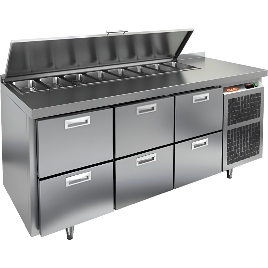Каталог оборудования Холодильное оборудованиеСтолы охлаждаемыеСтолы холодильные для салатовСтол холодильный для салатов HiCold SL1-222GN (1/3) с крышкой Стол холодильный для салатов HiCold SL1-222GN (1/3) с крышкой Код товара: 064-844 Поделиться: WhatsAppTelegram СравнитьДобавить в КПВ избранное 0 260 092 ₽ В корзину 0 шт Под заказСамовывоз сегодня бесплатно Взять в кредит Купить в лизинг Получить консультацию в WhatsApp Описание Характеристики Отзывы 0 Инструкции 1 Стол холодильный для салатов HiCold SL1-222GN (1/3) предназначен для использования на предприятиях общественного питания и торговли. Он объединяет рабочую поверхность и охлаждаемый отсек, что делает его удобным решением для хранения, охлаждения и подготовки ингредиентов при приготовлении салатов, пиццы и других блюд. Такая конструкция позволяет повару работать быстрее и эффективнее, так как все необходимые продукты находятся под рукой. Корпус и столешница выполнены из прочной нержавеющей стали, устойчивой к коррозии и легко поддающейся санитарной обработке.Металлическая крышка защищает продукты от загрязнений и сохраняет их свежесть. Особенности модели: Электронная панель управления — точная настройка температурного режима. 6 выдвижных ящика — быстрое размещение и замена продуктов. Вместимость салат-бара — до 8 гастроемкостей глубиной до 100 мм. Автоматические доводчики — комфорт при загрузке/выгрузке. Легкозаменяемые магнитные уплотнители — надежная герметичность. Открытая агрегатная часть — быстрый доступ для обслуживания. Регулируемые по высоте ножки — устойчивость даже на неровном полу. Толщина столешницы, борта и теплоизоляции — 50 мм, что обеспечивает прочность и энергоэффективность конструкции. HiCold SL1-222GN (1/3) — практичное и удобное решение для профессиональной кухни, обеспечивающее удобную подготовку и хранение ингредиентов.Изображение товара, представленного на фото, может отличаться от его фактического вида. Показать все Габаритные размеры1835×700×850 ммДиапазон рабочей температурыот +2 до +10 °CРасположение агрегатаБоковое Материал столешницыНержавеющая Тип столаС ящиками Объём505 лТип гастроемкостейGN 1/3 Количество ящиков6 штРазмер полки530×325 ммНапряжение220 ВМощность0,46 кВтТип охлажденияДинамическое Тип оттайкиАвтоматическая СтолешницаС бортом Габариты в упаковке2000×850×1000 ммВес нетто120 кгВес брутто140 кгБрендHicold Оставить отзыв Еще никто не оставил отзыв на этот товар Декларация о соответствии.pdf Ранее просмотрено Под заказ 98 272 ₽ Стол холодильный для салатов HiCold SLE3-1GN О З без крышки Под заказ 320 392 ₽ Стол холодильный для салатов HiCold SL1-2222GN (1/3) с крышкой Под заказ 204 922 ₽ Стол холодильный для салатов HiCold SL1-22GN (1/3) О с крышкой