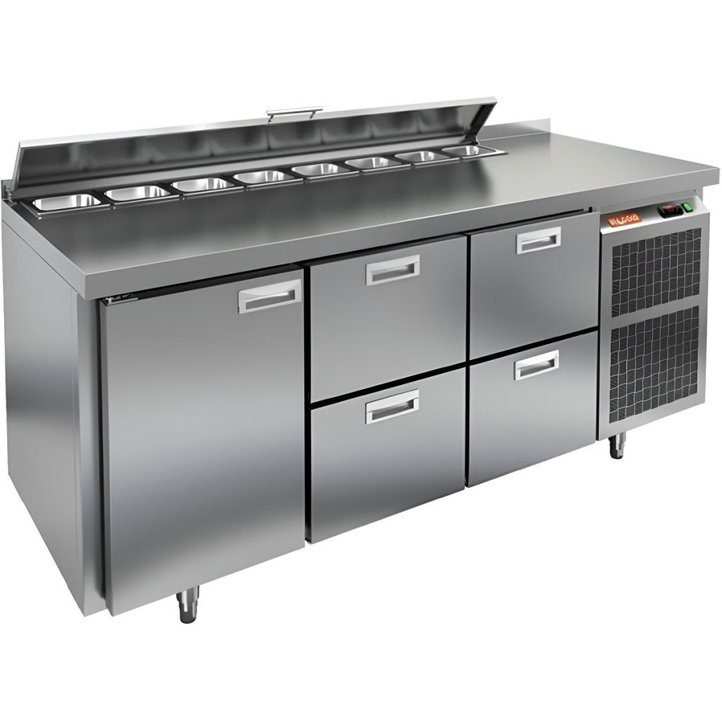 Стол холодильный для салатов HiCold SL2-122SN (1/6) с крышкой предназначен для использования на предприятиях общественного питания и торговли. Он подходит для хранения, обработки и кратковременного охлаждения ингредиентов, применяемых при приготовлении пиццы, салатов, закусок и других блюд.