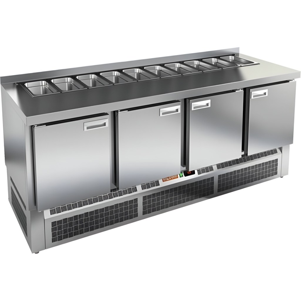 Каталог оборудования Холодильное оборудованиеСтолы охлаждаемыеСтолы холодильные для салатовСтол холодильный для салатов HiCold SLE1-1111SN (1/3) без крышки Стол холодильный для салатов HiCold SLE1-1111SN (1/3) без крышки Код товара: 064-546 Поделиться: WhatsAppTelegram 0 Цена по запросу Получить консультацию в WhatsApp Описание Характеристики Отзывы 0 Инструкции 2 Стол холодильный для салатов HiCold SLE1-1111SN (1/3) без крышки предназначен для предприятий общественного питания и торговли. Он позволяет хранить и обрабатывать ингредиенты для пиццы, салатов и других блюд, а также охлаждать и кратковременно хранить скоропортящиеся продукты и напитки. Модель совмещает рабочую поверхность и охлаждаемый объем, что обеспечивает удобство работы повара: все необходимые компоненты всегда под рукой. Корпус и столешница выполнены из нержавеющей стали, что гарантирует долговечность и простоту ухода. Особенности: Динамическая система охлаждения — равномерное распределение температуры по всему объему. Автоматическая оттайка — упрощает уход за оборудованием. Электронная панель управления — удобная настройка температуры и режимов работы. 4 вместительные внутренние полки формата GN 1/1 — оптимальное хранение ингредиентов. Автоматические доводчики дверей с фиксатором открытого положения — комфорт и безопасность работы. Легкозаменяемые магнитные уплотнители — простота обслуживания. Открытая агрегатная часть — облегчает доступ для обслуживания. Регулируемые по высоте ножки — адаптация к рабочей поверхности. Размер полки: 430×325 мм (GN 1/1) Максимальная глубина гастроемкостей: 100 мм Столешница с бортом, без крышки: толщина столешницы и теплоизоляции — 50 мм, высота борта — 50 мм HiCold SLE1-1111SN (1/3) без крышки — надежный и удобный стол для профессиональной кухни. Он обеспечивает эффективное охлаждение и хранение ингредиентов, а комбинированная рабочая поверхность с холодильным объемом упрощает работу повара, делая процесс приготовления быстрее и удобнее.Изображение товара, представленного на фото, может отличаться от его фактического вида. Показать все Габаритные размеры1970×700×800 ммДиапазон рабочей температурыот +2 до +10 °CРасположение агрегатаНижнее Материал столешницыНержавеющая Тип столаС дверьми Тип двериГлухая Объём430 лКоличество дверей4 штТип гастроемкостейGN 1/3 Размер полки430×325 ммНапряжение220 ВМощность0,46 кВтТип охлажденияДинамический Тип оттайкиАвтоматическая СтолешницаС бортом Вес нетто131 кгВес брутто185 кгБрендHicold Оставить отзыв Еще никто не оставил отзыв на этот товар Паспорт на HICOLD SLE1-1111SN (1/3).pdfДекларация о соответствии.pdf Ранее просмотрено Под заказ 107 200 ₽ Витрина кондитерская Carboma KC70 N 0,9-1 Light Паттерн (0106 Седой дуб) нейтральная