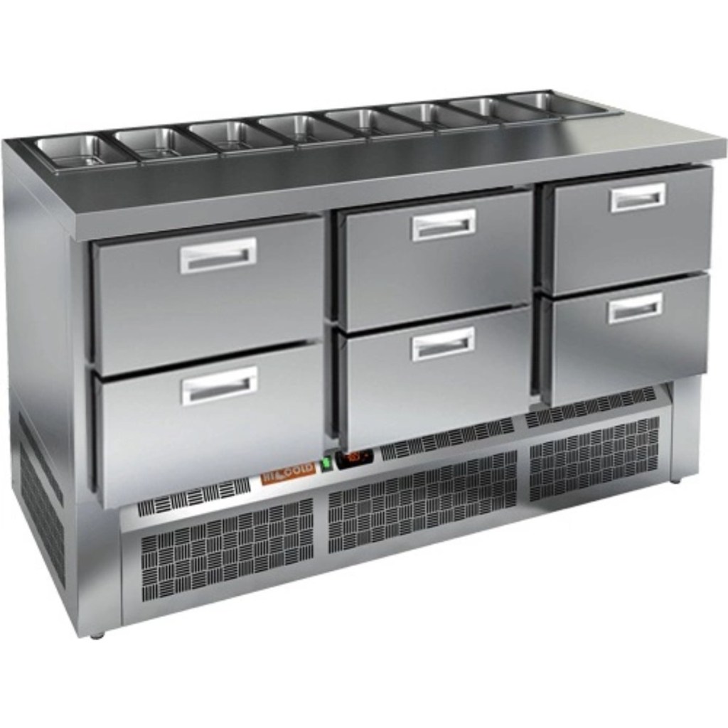 Стол холодильный для салатов HiCold SLE1-222GN (1/3) О без крышки предназначен для использования на предприятиях общественного питания и торговли. Он служит для хранения и обработки ингредиентов, используемых при приготовлении салатов, пиццы, закусок и других блюд. Также стол подходит для охлаждения и кратковременного хранения скоропортящихся продуктов и напитков.