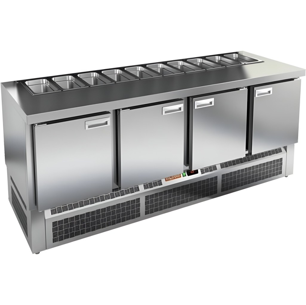 Каталог оборудования Холодильное оборудованиеСтолы охлаждаемыеСтолы холодильные для салатовСтол холодильный для салатов HiCold SLE2-1111GN (1/6) О без крышки Стол холодильный для салатов HiCold SLE2-1111GN (1/6) О без крышки Код товара: 064-861 Поделиться: WhatsAppTelegram СравнитьДобавить в КПВ избранное 0 168 382 ₽ В корзину 0 шт Под заказСамовывоз сегодня бесплатно Взять в кредит Купить в лизинг Получить консультацию в WhatsApp Описание Характеристики Отзывы 0 Инструкции 2 Стол холодильный для салатов HiCold SLE2-1111GN (1/6) О без крышки — это профессиональный салатный стол, предназначенный для использования в кафе, ресторанах, пиццериях и других предприятиях общественного питания. Он совмещает в себе просторную рабочую поверхность и охлаждаемый объем, обеспечивая удобство и эффективность при приготовлении различных блюд — от салатов до пиццы. Благодаря корпусу и столешнице из нержавеющей стали, оборудование устойчиво к коррозии, легко очищается и соответствует санитарным требованиям. Ключевые особенности: Электронная панель управления — обеспечивает точное регулирование температуры и удобство в эксплуатации. 4 вместительные полки формата GN 1/1 — позволяют организовать хранение большого объема продуктов и ингредиентов. Салат-бар вмещает до 11 гастроемкостей — оптимален для широкого ассортимента заготовок. Автоматические доводчики дверей с фиксацией — повышают удобство использования, особенно при загрузке и выгрузке продуктов. Магнитные уплотнители — легко заменяются и обеспечивают плотное прилегание, предотвращая утечку холода. Открытая агрегатная часть — облегчает техническое обслуживание. Регулируемые ножки — позволяют установить стол на любой поверхности, компенсируя неровности пола. Максимальная глубина гастроемкостей — 100 мм — подходит для хранения различных типов продуктов. Столешница толщиной 50 мм без борта — полноценная рабочая зона. Теплоизоляция толщиной 50 мм — сохраняет стабильный температурный режим и снижает энергозатраты. HiCold SLE2-1111GN (1/6) О без крышки — это функциональный и вместительный салатный стол, который идеально подходит для профессиональных кухонь с интенсивной загрузкой. Он сочетает в себе надежность, удобство и продуманную конструкцию для максимальной производительности на рабочем месте.Изображение товара, представленного на фото, может отличаться от его фактического вида. Показать все Габаритные размеры1970×700×850 ммДиапазон рабочей температурыот +2 до +10 °CРасположение агрегатаНижнее Материал столешницыНержавеющая Тип столаС дверьми Тип двериГлухая Объём505 лКоличество дверей4 штТип гастроемкостейGN 1/6 Размер полки530х325 ммНапряжение220 ВМощность0,46 кВтТип охлажденияДинамическое Тип оттайкиАвтоматическая СтолешницаБез борта Габариты в упаковке2200×850×1080 ммВес нетто135 кгВес брутто159 кгБрендHicold Оставить отзыв Еще никто не оставил отзыв на этот товар Паспорт на HICOLD SLE2-1111GN О.pdfДекларация о соответствии.pdf Ранее просмотрено Под заказ 106 741 ₽ Витрина холодильная настольная Carboma AC59 VM 0,7-1 (слайдер) (фронт стандартный цвет) Под заказ 100 700 ₽ Витрина кондитерская Carboma KC70 N 0,6-1 Light Bread Паттерн (0107 Ольха) хлебная, со стеклом
