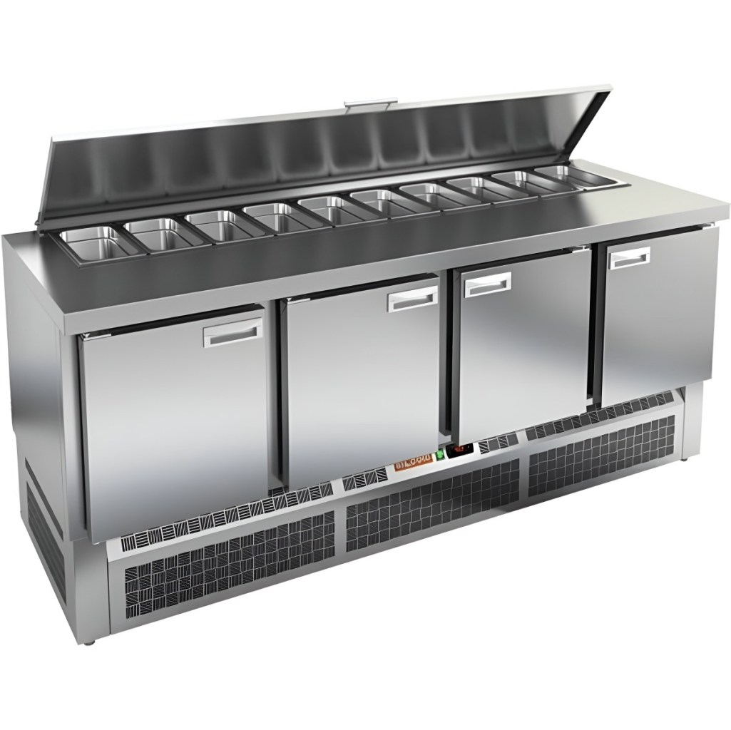 Каталог оборудования Холодильное оборудованиеСтолы охлаждаемыеСтолы холодильные для салатовСтол холодильный для салатов HiCold SLE2-1111GN (1/6) О с крышкой Стол холодильный для салатов HiCold SLE2-1111GN (1/6) О с крышкой Код товара: 064-860 Поделиться: WhatsAppTelegram СравнитьДобавить в КПВ избранное 0 171 801 ₽ В корзину 0 шт Под заказСамовывоз сегодня бесплатно Взять в кредит Купить в лизинг Получить консультацию в WhatsApp Описание Характеристики Отзывы 0 Инструкции 2 Стол холодильный для салатов HiCold SLE2-1111GN (1/6) О с крышкой — это профессиональный салатный стол, предназначенный для использования в кафе, ресторанах, пиццериях и других предприятиях общественного питания. Он совмещает в себе просторную рабочую поверхность и охлаждаемый объем, обеспечивая удобство и эффективность при приготовлении различных блюд — от салатов до пиццы. Благодаря корпусу и столешнице из нержавеющей стали, оборудование устойчиво к коррозии, легко очищается и соответствует санитарным требованиям. Металлическая крышка защищает продукты от загрязнений и сохраняет их свежесть. Ключевые особенности: Электронная панель управления — обеспечивает точное регулирование температуры и удобство в эксплуатации. 4 вместительные полки формата GN 1/1 — позволяют организовать хранение большого объема продуктов и ингредиентов. Салат-бар вмещает до 11 гастроемкостей — оптимален для широкого ассортимента заготовок. Автоматические доводчики дверей с фиксацией — повышают удобство использования, особенно при загрузке и выгрузке продуктов. Магнитные уплотнители — легко заменяются и обеспечивают плотное прилегание, предотвращая утечку холода. Открытая агрегатная часть — облегчает техническое обслуживание. Регулируемые ножки — позволяют установить стол на любой поверхности, компенсируя неровности пола. Максимальная глубина гастроемкостей — 100 мм — подходит для хранения различных типов продуктов. Столешница толщиной 50 мм без борта — полноценная рабочая зона. Теплоизоляция толщиной 50 мм — сохраняет стабильный температурный режим и снижает энергозатраты. HiCold SLE2-1111GN (1/6) О с крышкой — это функциональный и вместительный салатный стол, который идеально подходит для профессиональных кухонь с интенсивной загрузкой. Он сочетает в себе надежность, удобство и продуманную конструкцию для максимальной производительности на рабочем месте.Изображение товара, представленного на фото, может отличаться от его фактического вида. Показать все Габаритные размеры1970×700×850 ммДиапазон рабочей температурыот +2 до +10 °CРасположение агрегатаНижнее Материал столешницыНержавеющая Тип столаС дверьми Тип двериГлухая Объём505 лКоличество дверей4 штТип гастроемкостейGN 1/6 Размер полки530х325 ммНапряжение220 ВМощность0,46 кВтТип охлажденияДинамическое Тип оттайкиАвтоматическая СтолешницаБез борта Габариты в упаковке2200×850×1080 ммВес нетто135 кгВес брутто159 кгБрендHicold Оставить отзыв Еще никто не оставил отзыв на этот товар Паспорт на HICOLD SLE2-1111GN (1/6) О.pdfДекларация о соответствии.pdf Ранее просмотрено Под заказ 94 900 ₽ Витрина кондитерская Carboma D4 VM 120-1 (R120C) (0430 INOX) Под заказ 96 100 ₽ Витрина кондитерская Carboma KC70 N 0,9-1 Light Bread (версия 2.0) (9005) Под заказ 100 700 ₽ Витрина кондитерская Carboma KC70 N 0,6-1 Light Bread Паттерн (0107 Ольха) хлебная, со стеклом