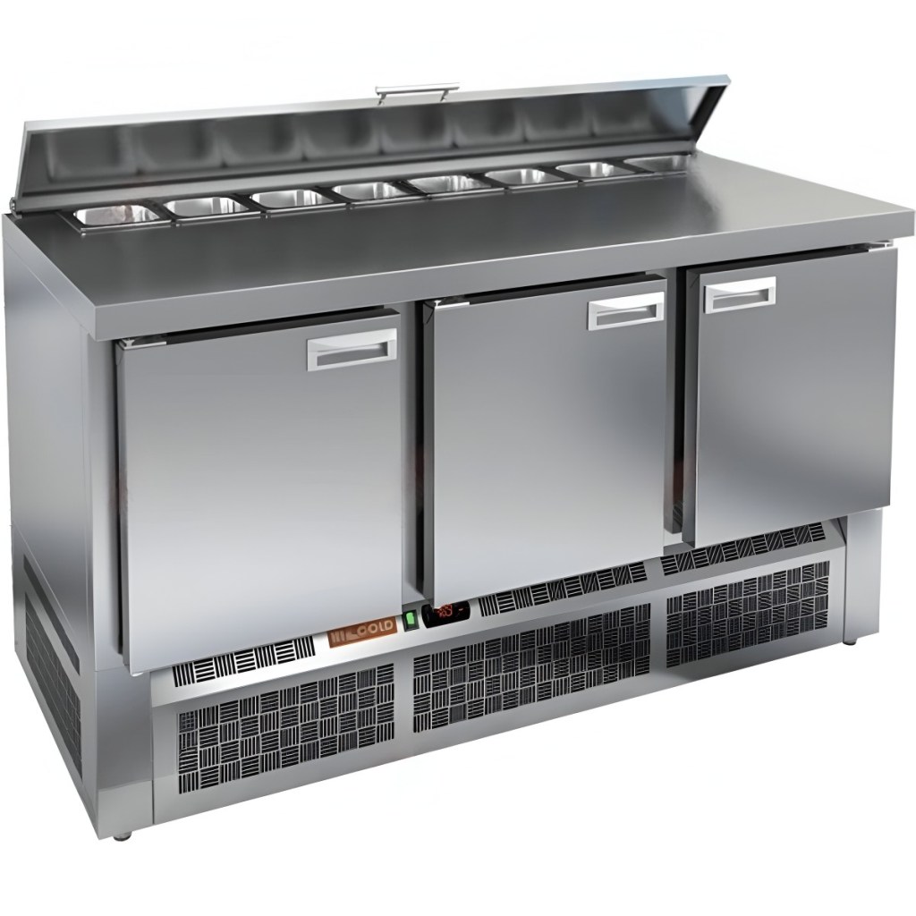 Каталог оборудования Холодильное оборудованиеСтолы охлаждаемыеСтолы холодильные для салатовСтол холодильный для салатов HiCold SLE2-111GN (1/6) О с крышкой Стол холодильный для салатов HiCold SLE2-111GN (1/6) О с крышкой Код товара: 064-867 Поделиться: WhatsAppTelegram СравнитьДобавить в КПВ избранное 0 147 231 ₽ В корзину 0 шт Под заказСамовывоз сегодня бесплатно Взять в кредит Купить в лизинг Получить консультацию в WhatsApp Описание Характеристики Отзывы 0 Инструкции 2 Стол холодильный для салатов HiCold SLE2-111GN (1/6) О с крышкой предназначен для предприятий общественного питания и торговли. Он используется для хранения, охлаждения и обработки ингредиентов, применяемых при приготовлении салатов, пиццы, закусок и других блюд. Модель объединяет удобную рабочую поверхность и охлаждаемый отсек, позволяя повару иметь все необходимое под рукой. Конструкция выполнена из прочной нержавеющей стали, устойчивой к коррозии и легкой в уходе. Металлическая крышка защищает продукты от загрязнений и сохраняет их свежесть. Особенности модели: Электронная панель управления — точная настройка температуры и контроль за режимами работы. 3 вместительные внутренние полки — рациональное распределение хранения. Салат-бар вмещает 8 гастроемкостей — оптимальная организация ингредиентов. Автоматические доводчики дверей с фиксацией в открытом положении — удобно при загрузке и выгрузке продуктов. Магнитные уплотнители — легко заменяются, обеспечивая герметичность. Открытая агрегатная часть — упрощает техническое обслуживание. Регулируемые по высоте ножки — позволяют установить оборудование на любой поверхности. Глубина гастроемкостей — до 100 мм. Толщина столешницы и теплоизоляции — по 50 мм, что способствует сохранению холода и прочности конструкции. HiCold SLE2-111GN (1/6) О с крышкой — это функциональный и надёжный салатный стол, сочетающий в себе удобство работы и эффективное охлаждение. Отличное решение для кухни с интенсивной нагрузкой. Изображение товара, представленного на фото, может отличаться от его фактического вида. Показать все Габаритные размеры1485×700×850 ммДиапазон рабочей температурыот +2 до +10 °CРасположение агрегатаНижнее Материал столешницыНержавеющая Тип столаС дверьми Тип двериГлухая Объём375 лКоличество дверей3 штТип гастроемкостейGN 1/6 Размер полки530×325 ммНапряжение220 ВМощность0,22 кВтТип охлажденияДинамическое Тип оттайкиАвтоматическая СтолешницаБез борта Габариты в упаковке1700×850×1080 ммВес нетто115 кгВес брутто160 кгБрендHicold Оставить отзыв Еще никто не оставил отзыв на этот товар Паспорт на HICOLD SLE2-111GN О.pdfДекларация о соответствии.pdf Ранее просмотрено Под заказ 125 182 ₽ Стол холодильный для салатов HiCold SLE3-11GN О с крышкой