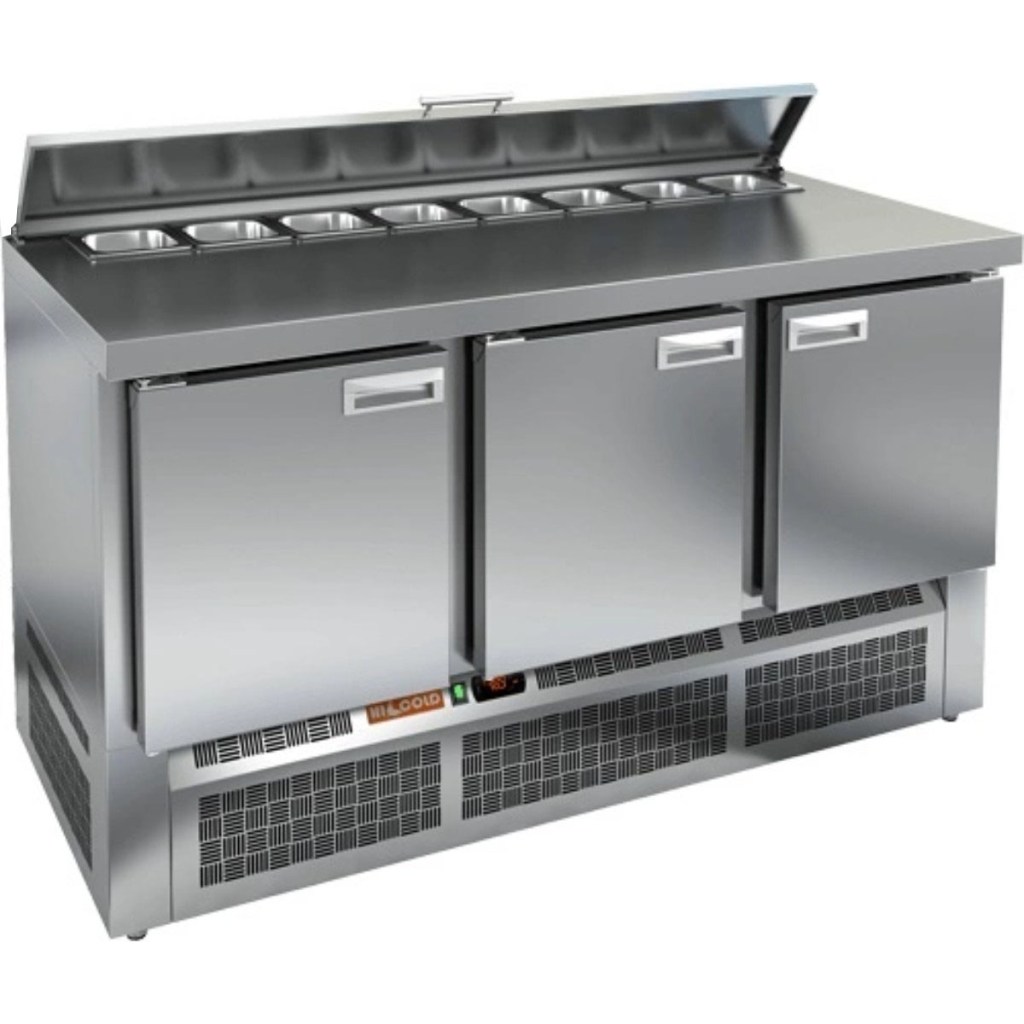Каталог оборудования Холодильное оборудованиеСтолы охлаждаемыеСтолы холодильные для салатовСтол холодильный для салатов HiCold SLE2-111SN (1/6) О З с крышкой Стол холодильный для салатов HiCold SLE2-111SN (1/6) О З с крышкой Код товара: 064-873 Поделиться: WhatsAppTelegram СравнитьДобавить в КПВ избранное 0 152 002 ₽ В корзину 0 шт Под заказСамовывоз сегодня бесплатно Взять в кредит Купить в лизинг Получить консультацию в WhatsApp Описание Характеристики Отзывы 0 Инструкции 2 Стол холодильный для салатов HiCold SLE2-111SN (1/6) О З с крышкой предназначен для предприятий общественного питания и торговли. Он используется для хранения, охлаждения и обработки ингредиентов, применяемых при приготовлении салатов, пиццы, закусок и других блюд. Модель объединяет удобную рабочую поверхность и охлаждаемый отсек, позволяя повару иметь все необходимое под рукой. Конструкция выполнена из прочной нержавеющей стали, устойчивой к коррозии и легкой в уходе. Металлическая крышка защищает продукты от загрязнений и сохраняет их свежесть. Особенности модели: Электронная панель управления — точная настройка температуры и контроль за режимами работы. 3 вместительные внутренние полки — рациональное распределение хранения. Салат-бар вмещает 8 гастроемкостей — оптимальная организация ингредиентов. Автоматические доводчики дверей с фиксацией в открытом положении — удобно при загрузке и выгрузке продуктов. Магнитные уплотнители — легко заменяются, обеспечивая герметичность. Открытая агрегатная часть — упрощает техническое обслуживание. Регулируемые по высоте ножки — позволяют установить оборудование на любой поверхности. Максимальная глубина гастроемкостей — 100 мм — подходит для хранения различных типов продуктов. Задняя стенка из нержавеющей стали, включая агрегатный отсек — прочность и гигиеничность. Столешница толщиной 50 мм без борта — полноценная рабочая зона. Теплоизоляция толщиной 50 мм — сохраняет стабильный температурный режим и снижает энергозатраты. HiCold SLE2-111SN (1/6) О З с крышкой — это функциональный и надёжный салатный стол, сочетающий в себе удобство работы и эффективное охлаждение. Отличное решение для кухни с интенсивной нагрузкой. Изображение товара, представленного на фото, может отличаться от его фактического вида. Показать все Габаритные размеры1485×600×850 ммДиапазон рабочей температурыот +2 до +10 °CРасположение агрегатаНижнее Материал столешницыНержавеющая Тип столаС дверьми Тип двериГлухая Объём320 лКоличество дверей3 штТип гастроемкостейGN 1/6 Размер полки430×325 ммНапряжение220 ВМощность0,22 кВтТип охлажденияДинамическое Тип оттайкиАвтоматическая СтолешницаБез борта Габариты в упаковке1700×750×1080 ммВес нетто88 кгВес брутто148 кгБрендHicold Оставить отзыв Еще никто не оставил отзыв на этот товар Паспорт на HICOLD SLE2-111SN О 3.pdfДекларация о соответствии.pdf Ранее просмотрено Под заказ 163 161 ₽ Стол холодильный для салатов HiCold SL1-111SN (1/3) О без крышки Под заказ 255 412 ₽ Стол холодильный для салатов HiCold SL1-222GN (1/3) без крышки Под заказ 204 922 ₽ Стол холодильный для салатов HiCold SL1-22GN (1/3) О с крышкой