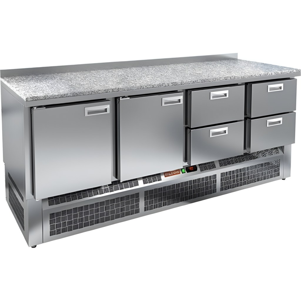 Каталог оборудования Холодильное оборудованиеСтолы охлаждаемыеСтолы холодильные среднетемпературныеСтол холодильный среднетемпературный HiCold GNE 1122/TN камень Стол холодильный среднетемпературный HiCold GNE 1122/TN камень Код товара: 065-343 Поделиться: WhatsAppTelegram СравнитьДобавить в КПВ избранное 0 271 405 ₽ В корзину 0 шт Под заказСамовывоз сегодня бесплатно Взять в кредит Купить в лизинг Получить консультацию в WhatsApp Описание Характеристики Отзывы 0 Стол холодильный среднетемпературный HiCold GNE 1122/TN камень разработан для профессионального использования на предприятиях общественного питания и торговли. Он подходит как для обработки ингредиентов в процессе приготовления блюд, так и для кратковременного хранения скоропортящихся продуктов и напитков. Устройство оснащено современной электронной панелью управления, которая обеспечивает удобную и точную настройку температурного режима. Корпус выполнен из нержавеющей стали, а столешница — из прочного гранита, что гарантирует долговечность и устойчивость к механическим повреждениям. В комплект входят 2 полки для организации внутреннего пространства. Ключевые преимущества: 2 распашные двери — обеспечивают быстрый доступ к хранящимся продуктам. 4 выдвижные секции — позволяют рационально распределить ингредиенты и сэкономить время при работе. Автоматические доводчики с фиксаторами — способствуют герметичному закрытию дверей и удержанию их в открытом положении при необходимости. Магнитные уплотнители — легко заменяются и обеспечивают плотное прилегание, предотвращая утечку холодного воздуха. Регулируемые ножки — позволяют установить стол на неровной поверхности и обеспечить устойчивость. Толщина столешницы 50 мм — прочная и устойчивая к нагрузкам рабочая поверхность. Высота борта 50 мм — защищает от соскальзывания продуктов. Теплоизоляция 50 мм — сохраняет стабильную температуру внутри шкафа. Температурный режим окружающей среды: от 12 до 37 °C — подходит для работы в разных условиях. HiCold GNE 1122/TN камень — это универсальное и надежное оборудование, сочетающее в себе функции хранения и рабочей поверхности, что делает его незаменимым на профессиональной кухне.Изображение товара, представленного на фото, может отличаться от его фактического вида. Показать все Габаритные размеры1970×700×850 ммДиапазон рабочей температурыот -2 до +10 °CРасположение агрегатаНижнее Материал столешницыГранитная Тип столаС дверьми и ящиками Тип двериГлухая Объём505 лКоличество дверей2 штКоличество полок2 штКоличество ящиков4 штРазмер полки530×325 ммНапряжение220 ВМощность0,46 кВтТип охлажденияДинамический Тип оттайкиАвтоматическая СтолешницаС бортом Габариты в упаковке2180×850×1080 ммВес нетто210 кгВес брутто260 кгБрендHicoldВсе холодильные столы HicoldВсе нержавеющие холодильные столы Все холодильные столы с бортом Оставить отзыв Еще никто не оставил отзыв на этот товар Ранее просмотрено Под заказ Цена по запросу Витрина морозильная МХМ Валенсия ВХН-3,75 В наличии 63 864 ₽ Шкаф холодильный МХМ Капри 0,5МВ