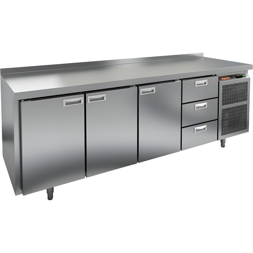 Каталог оборудования Холодильное оборудованиеСтолы охлаждаемыеСтолы холодильные среднетемпературныеСтол холодильный среднетемпературный HiCold SN 1113/TN Стол холодильный среднетемпературный HiCold SN 1113/TN Код товара: 001-329 Поделиться: WhatsAppTelegram СравнитьДобавить в КПВ избранное 0 212 841 ₽ В корзину 0 шт Под заказСамовывоз сегодня бесплатно Взять в кредит Купить в лизинг Получить консультацию в Max Описание Характеристики Отзывы 0 Инструкции 2 Стол холодильный среднетемпературный HiCold SN 1113/TN сочетает в себе рабочую поверхность для раскатывания теста и обработки ингредиентов, а также охлаждающую камеру для кратковременного хранения скоропортящихся продуктов и напитков. Оборудование предназначено для предприятий общественного питания и обеспечивает комфортную и эффективную работу на кухне. Особенности: Цельнозаливной корпус из нержавеющей стали с 50 мм теплоизоляцией, обеспечивающий высокую герметичность и жесткость конструкции. Надежный электронный блок управления с несколькими режимами оттаивания для удобства эксплуатации. Вентилятор повышенной мощности, обеспечивающий принудительную вентиляцию по всему объему стола и равномерное быстрое охлаждение. Интеллектуальное размораживание и термическое выпаривание конденсата для поддержания оптимальных условий внутри камеры. Новая экономичная модель компрессора, снижающая энергопотребление. Облегченный доступ к агрегату для удобства сервисного обслуживания. Двери с петлями-доводчиками, повышающими комфорт и безопасность при эксплуатации. Регулируемые по высоте ножки для адаптации к рабочей поверхности и неровностям пола. Максимальная нагрузка на полку — 50 кг. Высота борта — 50 мм для удобства и безопасности работы. Рабочая температура окружающего воздуха — от 12 до 37 °C. HiCold SN 1113/TN — это надежное, эргономичное и энергоэффективное решение для профессиональной кухни, сочетающее качественные материалы и современные технологии для оптимального хранения и подготовки продуктов.Изображение товара, представленного на фото, может отличаться от его фактического вида. Показать все Габаритные размеры2280×600×850 ммДиапазон рабочей температурыот -2 до +10 °CРасположение агрегатаБоковое Материал столешницыНержавеющая Тип столаС дверьми и ящиками Тип двериГлухая Объём570 лКоличество дверей3 штКоличество ящиков3 штНапряжение220 ВТип охлажденияДинамический Тип оттайкиАвтоматическая СтолешницаС бортом Вес нетто142 кгБрендHicoldВсе холодильные столы HicoldВсе оцинкованные холодильные столы Все холодильные столы с бортом Оставить отзыв Еще никто не оставил отзыв на этот товар Паспорт на HICOLD SN 1113/TN.pdfДекларация о соответствии.pdf Похожие товары Перейти в каталог Под заказ 197 541 ₽ Стол холодильный среднетемпературный HiCold SN 1112/TN Под заказ 258 741 ₽ Стол холодильный среднетемпературный HiCold SN 1133/TN В наличии 132 149 ₽ Стол холодильный среднетемпературный Cooleq GN4100TN С этим товаром покупают Под заказ 95 465 ₽ Жарочная поверхность Аbat АКО-80/1Н-С-02 Ранее просмотрено Под заказ 218 242 ₽ Стол холодильный среднетемпературный HiCold SNE 1111/TN BOX Под заказ 275 931 ₽ Стол холодильный среднетемпературный HiCold GN 1133 BR2 TN Под заказ 244 251 ₽ Стол холодильный среднетемпературный HiCold GN 133 BR2 TN