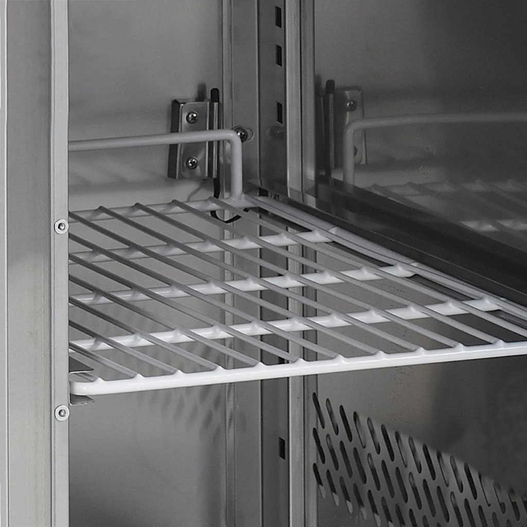 Каталог оборудования Холодильное оборудованиеСтолы охлаждаемыеСтолы морозильные низкотемпературныеСтол морозильный TEFCOLD SA910BT Стол морозильный TEFCOLD SA910BT Код товара: 010-255 Поделиться: WhatsAppTelegram СравнитьДобавить в КПВ избранное 0 116 316 ₽ В корзину 0 шт Под заказСамовывоз сегодня бесплатно Взять в кредит Купить в лизинг Получить консультацию в WhatsApp Описание Характеристики Отзывы 0 Инструкции 1 Стол морозильный TEFCOLD SA910BT — профессиональное оборудование для раскатки теста, обработки, заморозки и долговременного хранения продуктов, полуфабрикатов, напитков и мороженого на предприятиях общественного питания и торговли. Корпус и внутренняя отделка выполнены из нержавеющей стали AISI 304, что обеспечивает долговечность, гигиеничность и лёгкость ухода. Особенности модели: Статическое охлаждение — равномерная температура по всему объёму Автоматическое размораживание — поддержание стабильного режима без образования наледи Электронный термостат и градусник — точный контроль температуры Хладагент R134a, подзарядка — 0,165 кг 2 полки для удобной организации внутреннего пространства Регулируемые по высоте ножки — устойчивость на любой поверхности Климатический класс 4 — работа при температуре до +30 °C Размеры полок: 530 × 325 мм Внутренние размеры: 830 × 515 × 500 мм Потребляемая мощность: 0,338 кВт Энергопотребление: 8,13 кВт/сутки Уровень шума: 42 дБ TEFCOLD SA910BT — надёжный морозильный стол для профессиональных кухонь и предприятий общественного питания. Модель сочетает рабочую поверхность для раскатки теста, эффективное охлаждаемое пространство и долговременное хранение продуктов, обеспечивая удобство работы и сохранность ингредиентов.Изображение товара, представленного на фото, может отличаться от его фактического вида. Показать все Габаритные размеры943×700×877 ммДиапазон рабочей температурыот -20 до -10 °CРасположение агрегатаНижнее Материал столешницыНержавеющая Тип столаС дверьми Тип двериГлухая Общий объем260 лПолезный объем230 лКоличество дверей2 штНапряжение230 ВРасход электроэнергии в сутки6,95 кВт/сутТип охлажденияСтатическое Тип оттайкиАвтоматическая Климатический класс4 ХладагентR134а СтолешницаБез борта Габариты в упаковке980×770×1040 ммВес нетто86 кгВес брутто96 кгБрендTefcold Оставить отзыв Еще никто не оставил отзыв на этот товар Инструкция на TEFCOLD SA910BT.pdf Похожие товары Перейти в каталог Под заказ 132 741 ₽ Стол морозильный Abat СХН-60-01 с бортом (дверь, дверь) В наличии 79 865 ₽ Стол морозильный Cooleq SS45BT Под заказ 108 783 ₽ Стол морозильный HURAKAN HKN-GN2BT Под заказ 132 842 ₽ Стол морозильный Abat СХН-60-01 без борта (дверь, дверь) С этим товаром покупают Под заказ 109 950 ₽ Шкаф холодильный HURAKAN HKN-GX650TN Под заказ 140 250 ₽ Жарочная поверхность Аbat ГАКО-80/2Н-Ч-00 В наличии 60 020 ₽ Индукционная плита HURAKAN HKN-ICF35DX47 Ранее просмотрено В наличии 145 007 ₽ Сплит-система холодильная среднетемпературная Intercold MCM 223/380 FT Evolution Под заказ 267 202 ₽ Стол морозильный HiCold SN 1122/BT