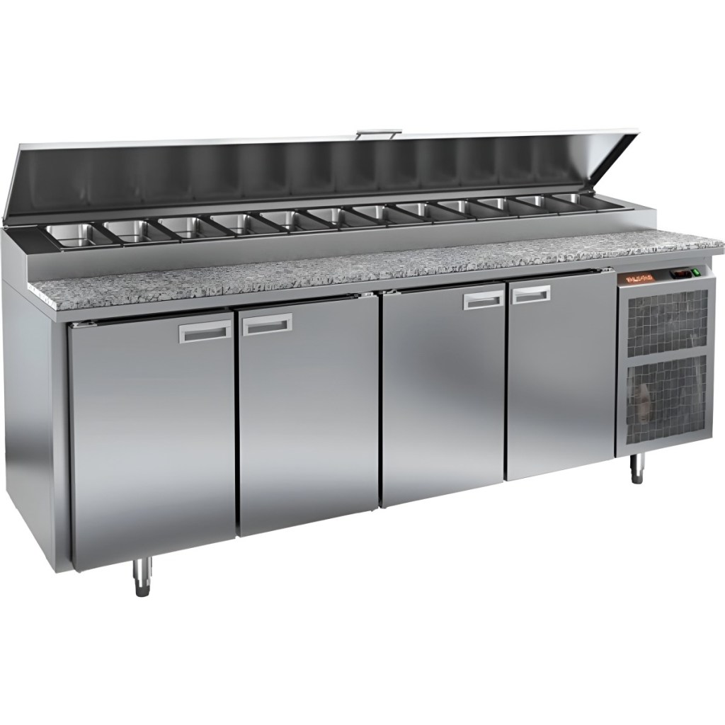 Каталог оборудования Холодильное оборудованиеСтолы охлаждаемыеСтолы холодильные для пиццыСтол холодильный для пиццы HiCold PZ1-1111GN (1/3) камень Стол холодильный для пиццы HiCold PZ1-1111GN (1/3) камень Код товара: 064-684 Поделиться: WhatsAppTelegram СравнитьДобавить в КПВ избранное 0 290 062 ₽ В корзину 0 шт Под заказСамовывоз сегодня бесплатно Взять в кредит Купить в лизинг Получить консультацию в WhatsApp Описание Характеристики Отзывы 0 Инструкции 2 Стол холодильный для пиццы HiCold PZ1-1111GN (1/3) камень предназначен для профессиональных кухонь ресторанов, кафе и предприятий торговли. Он совмещает просторную рабочую поверхность из камня для раскатки теста и подготовки ингредиентов с охлаждаемым объёмом для кратковременного хранения продуктов и напитков. Такой подход экономит место и ускоряет работу повара — всё необходимое всегда под рукой. Основные особенности: Столешница из камня — устойчива к механическим повреждениям, не впитывает запахи и легко очищается Динамическая система охлаждения для равномерного распределения холода Автоматическая оттайка для бесперебойной работы Электронная панель управления для точной регулировки температуры 4 вместительные полки формата GN 1/1 (размер 530×325 мм) Автоматические доводчики дверей с фиксатором открытого положения Легкозаменяемые магнитные уплотнители для поддержания герметичности Открытая агрегатная часть для удобного обслуживания Регулируемые по высоте ножки для установки по уровню Максимальная глубина гастроёмкостей: 100 мм Глубина рабочей поверхности: 324 мм Толщина столешницы и теплоизоляции: 50 мм Вместимость салат-бара: до 12 гастроёмкостей HICOLD PZ1-1111/GN со столешницей из камня — это прочный, гигиеничный и удобный стол для пиццы, сочетающий рабочую поверхность и холодильный блок. Идеален для интенсивной эксплуатации на профессиональной кухне.Изображение товара, представленного на фото, может отличаться от его фактического вида. Показать все Габаритные размеры2280×700×1000 ммДиапазон рабочей температурыот +2 до +10 °CРасположение агрегатаБоковое Материал столешницыГранитная Тип столаС дверьми Тип двериГлухая Объём660 лТип гастроемкостейGN 1/3 Количество дверей4 штРазмер полки530×325 ммНапряжение220 ВМощность0,48 кВтТип охлажденияДинамическое Тип оттайкиАвтоматическая Габариты в упаковке2380×840×1140 ммВес нетто208 кгВес брутто228 кгБрендHicoldВсе холодильные столы для пиццы Hicold Оставить отзыв Еще никто не оставил отзыв на этот товар Паспорт на HICOLD PZ1-1111GN (1/3).pdfДекларация о соответствии.pdf Ранее просмотрено Под заказ 253 792 ₽ Стол холодильный для пиццы HiCold PZ2-13/GN (1/6H) камень
