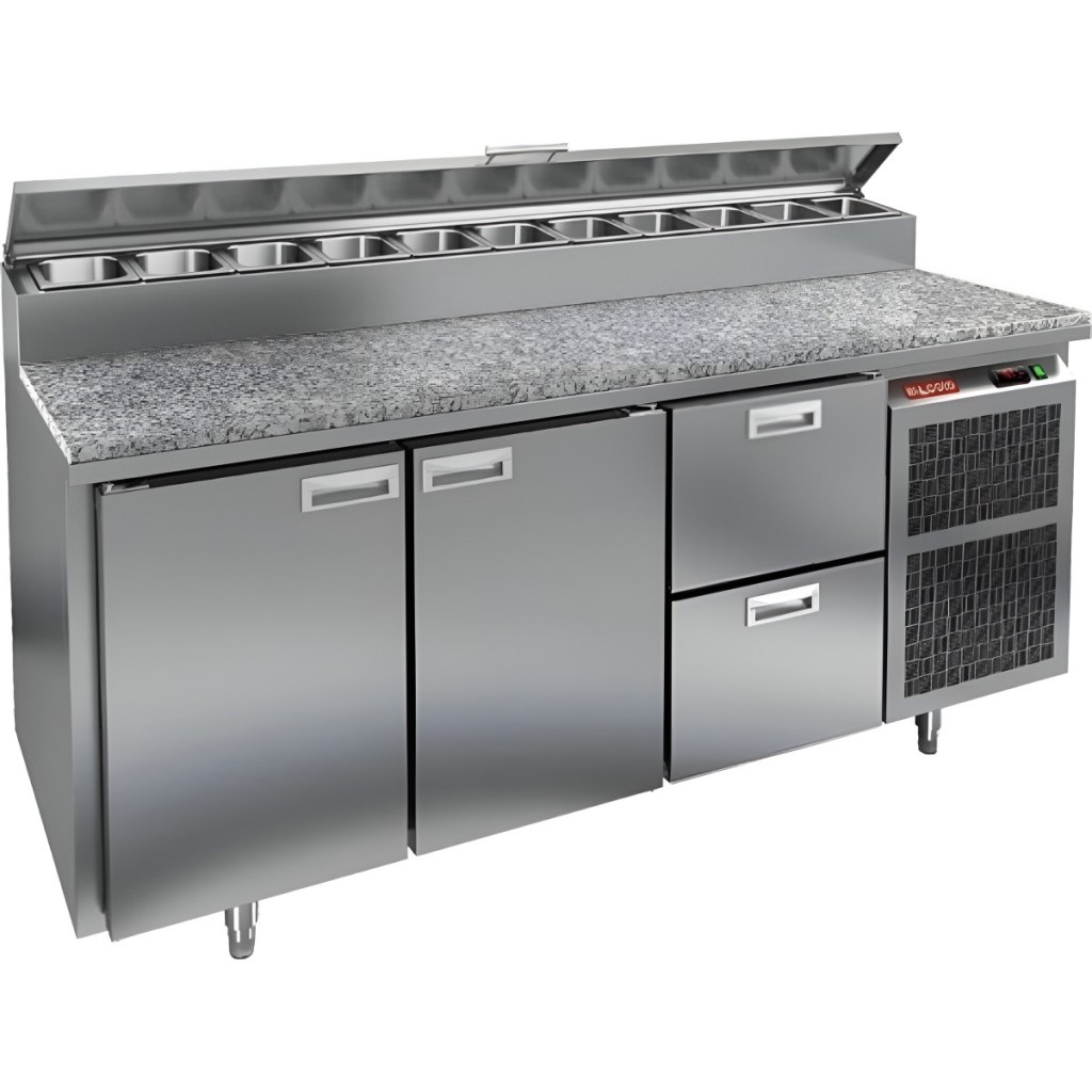 Каталог оборудования Холодильное оборудованиеСтолы охлаждаемыеСтолы холодильные для пиццыСтол холодильный для пиццы HiCold PZ2-112GN (1/6) камень Стол холодильный для пиццы HiCold PZ2-112GN (1/6) камень Код товара: 064-751 Поделиться: WhatsAppTelegram СравнитьДобавить в КПВ избранное 0 277 462 ₽ В корзину 0 шт Под заказСамовывоз сегодня бесплатно Взять в кредит Купить в лизинг Получить консультацию в WhatsApp Описание Характеристики Отзывы 0 Стол холодильный для пиццы HiCold PZ2-112GN (1/6) камень предназначен для кухонь и предприятий общественного питания. Он используется для раскатки теста, подготовки ингредиентов для пиццы, салатов и других блюд, а также для охлаждения и кратковременного хранения скоропортящихся продуктов. Модель совмещает гранитную рабочую поверхность и охлаждаемый отсек с 2 дверями и 2 ящиками, обеспечивая удобный доступ к ингредиентам и эффективное хранение. Особенности: Динамическая система охлаждения для равномерного поддержания температуры Автоматическая оттайка для удобного обслуживания Электронная панель управления для точной настройки параметров Вместительная внутренняя полка формата GN 1/1 (размер 530×325 мм) 2 двери и 2 вместительных ящика для хранения ингредиентов Автоматические доводчики дверей с фиксатором открытого положения Легкозаменяемые магнитные уплотнители для герметичности Открытая агрегатная часть для легкого доступа к компонентам Регулируемые по высоте ножки для устойчивости Гранитная рабочая поверхность глубиной 486 мм и толщиной 50 мм — устойчива к повреждениям, высоким температурам и царапинам Толщина теплоизоляции: 50 мм Максимальная глубина гастроемкостей: 100 мм Вместимость салат-бара: 11 гастроемкости Стол холодильный HiCold PZ2-112GN (1/6) камень — это надёжный и функциональный стол для пиццы. Он сочетает рабочую поверхность и охлаждаемый отсек, облегчает хранение и подготовку ингредиентов, повышает удобство работы повара и соответствует стандартам профессиональной кухни.Изображение товара, представленного на фото, может отличаться от его фактического вида. Показать все Габаритные размеры1835×700×1000 ммДиапазон рабочей температурыот +2 до +10 °CРасположение агрегатаБоковое Материал столешницыГранитная Тип столаС дверьми и ящиками Тип двериГлухая Объём505 лТип гастроемкостейGN 1/6 Количество дверей2 штКоличество ящиков2 штРазмер полки530×325 ммНапряжение220 ВМощность0,5 кВтТип охлажденияДинамическое Тип оттайкиАвтоматическая Габариты в упаковке1835×700×1000 ммВес нетто172 кгВес брутто248 кгБрендHicoldВсе холодильные столы для пиццы Hicold Оставить отзыв Еще никто не оставил отзыв на этот товар Ранее просмотрено Под заказ 373 852 ₽ Стол холодильный для пиццы HiCold PZ3-223/GN камень Под заказ 308 062 ₽ Стол холодильный для пиццы HiCold PZ2-122GN (1/6) камень Под заказ 253 792 ₽ Стол холодильный для пиццы HiCold PZ2-13/GN (1/6H) камень