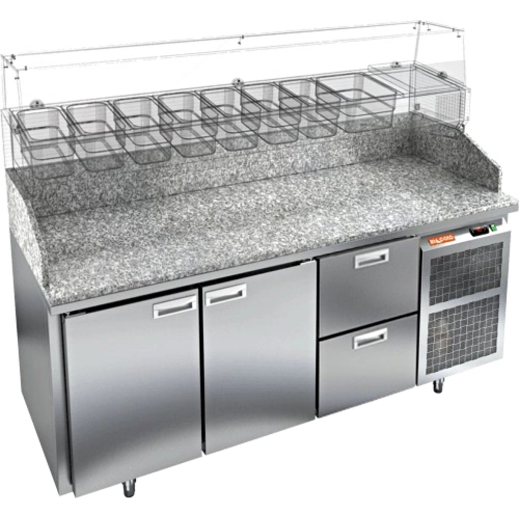 HiCold PZ3-112/GN камень— это надёжный и функциональный холодильный стол для пиццы, который сочетает прочность, эргономику и эффективное охлаждение. Благодаря гранитной столешнице, корпусу из нержавеющей стали, двум глухим дверям и двум выдвижным ящикам он станет универсальным решением для профессиональной кухни.
