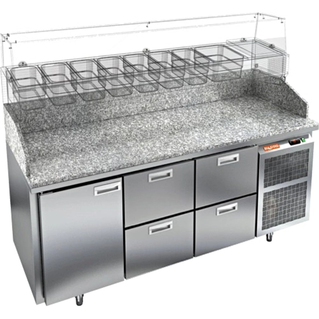 Каталог оборудования Холодильное оборудованиеСтолы охлаждаемыеСтолы холодильные для пиццыСтол холодильный для пиццы HiCold PZ3-122/GN камень Стол холодильный для пиццы HiCold PZ3-122/GN камень Код товара: 065-008 Поделиться: WhatsAppTelegram СравнитьДобавить в КПВ избранное 0 327 952 ₽ В корзину 0 шт Под заказСамовывоз сегодня бесплатно Взять в кредит Купить в лизинг Получить консультацию в WhatsApp Описание Характеристики Отзывы 0 Стол холодильный для пиццы HiCold PZE3-122/GN камень предназначен для использования в пиццериях, кафе, магазинах и ресторанах. Он идеально подходит для раскатки теста, подготовки ингредиентов и кратковременного хранения скоропортящихся продуктов. Витрина приобретается отдельно. Стол сочетает корпус из нержавеющей стали и гранитную столешницу, которая устойчива к механическим и температурным нагрузкам и удобна в работе с тестом. Такая конструкция обеспечивает долговечность, гигиеничность и простоту ухода. Особенности модели: Охлаждение: динамическое — равномерное поддержание температуры Оттайка: автоматическая — удобство и экономия времени Панель управления: электронная — точная настройка температуры Ножки: регулируемые по высоте — устойчивость на неровной поверхности Двери: 1 глухая дверца с автоматическими доводчиками и фиксатором открытого положения Ящики: 4 выдвижных ящика — удобное хранение ингредиентов Уплотнители: легкозаменяемые магнитные — герметичность и простота обслуживания Толщина теплоизоляции: 50 мм — сохранение холода и энергоэффективность Рабочая поверхность: глубина 680 мм — удобство работы HiCold PZE3-122/GN камень— это надёжный и функциональный холодильный стол для пиццы, который сочетает прочность, эргономику и эффективное охлаждение. Благодаря гранитной столешнице, корпусу из нержавеющей стали, двум глухим дверям и двум выдвижным ящикам он станет универсальным решением для профессиональной кухни. Изображение товара, представленного на фото, может отличаться от его фактического вида. Показать все Габаритные размеры1835×700×1050 ммДиапазон рабочей температурыот +2 до +10 °CРасположение агрегатаБоковое Материал столешницыГранитная Тип столаС дверьми и ящиками Тип двериГлухая Объём505 лКоличество дверей1 штКоличество ящиков4 штРазмер полки530×325 ммНапряжение220 ВМощность0,5 кВтТип охлажденияДинамическое Тип оттайкиАвтоматическая Габариты в упаковке2000×850×1180 ммВес нетто172 кгВес брутто192 кгБрендHicoldВсе холодильные столы для пиццы HicoldВсе нержавеющие холодильные столы для пиццы Оставить отзыв Еще никто не оставил отзыв на этот товар Ранее просмотрено Под заказ 257 662 ₽ Стол холодильный для пиццы HiCold PZ2-1111GN (1/6) З Под заказ 164 422 ₽ Стол холодильный для пиццы HiCold PZ2-1GN (1/6) камень