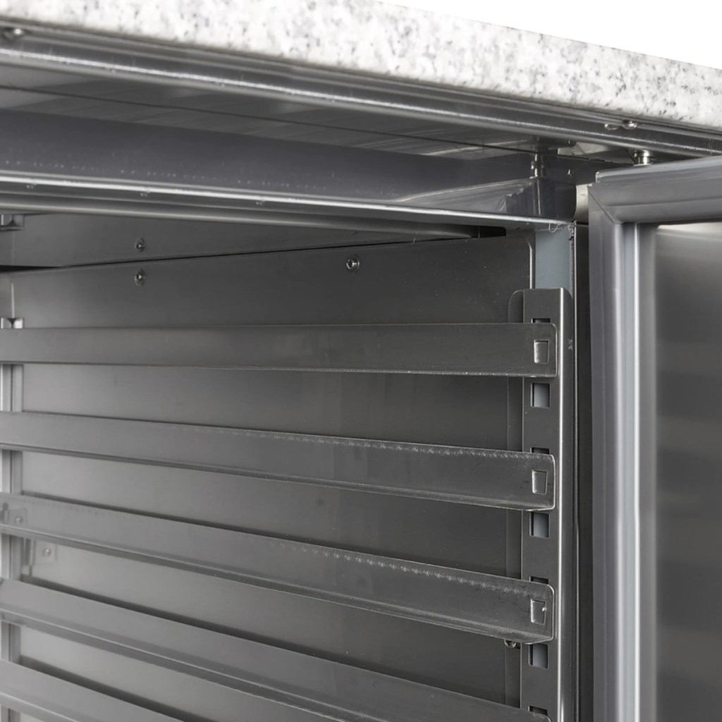 Каталог оборудования Холодильное оборудованиеСтолы охлаждаемыеСтолы холодильные для пиццыСтол холодильный для пиццы TEFCOLD PT1200 Стол холодильный для пиццы TEFCOLD PT1200 Код товара: 066-708 Поделиться: WhatsAppTelegram 0 Цена по запросу Получить консультацию в WhatsApp Описание Характеристики Отзывы 0 Инструкции 3 Стол холодильный для пиццы TEFCOLD PT1200 предназначен для охлаждения продуктов и раскатки теста для пиццы на предприятиях общественного питания и торговли. Корпус и внутренняя обшивка выполнены из нержавеющей стали AISI 304, что обеспечивает долговечность и лёгкую санитарную обработку. В витрине-надстройке можно хранить ингредиенты для приготовления пиццы. Гастроемкости в комплект не входят. Особенности: Вентилируемое охлаждение для равномерного распределения температуры; Автоматическое размораживание для упрощения эксплуатации; Электронный термостат для точного контроля температуры; Экологичный хладагент R600a; Самозакрывающиеся двери; 7 комплектов направляющих для поддонов для пиццы; Климатический класс 4; Полезный объем: 370 л; Потребляемая энергия: 2,32 кВт/сутки; Уровень шума: 42 дБ; Количество хладагента: 95 г; Размеры полок: 400×600 мм; Внутренние размеры: 1052×630×589 мм; Регулируемые по высоте ножки. Tefcold PT1200 — это функциональный и надёжный холодильный стол для предприятий общественного питания, обеспечивающий удобное хранение ингредиентов и качественное охлаждение продуктов при приготовлении пиццы. Компактный дизайн, прочный корпус из нержавеющей стали и электронное управление делают модель удобной и долговечной в эксплуатации.Изображение товара, представленного на фото, может отличаться от его фактического вида. Показать все Габаритные размеры1510×800×1445 ммДиапазон рабочей температурыот +2 до +10 °CРасположение агрегатаБоковое Материал столешницыГранитная Тип столаС дверьми Тип двериГлухая Полезный объем370 лОбъём390 лКоличество дверей2 штРазмер полки400×600 ммНапряжение220 ВМощность0,34 кВтРасход электроэнергии в сутки2,32 кВтТип охлажденияДинамическое Тип оттайкиАвтоматическая ХладагентR600a СтолешницаС бортом Габариты в упаковке1550×840×1050 ммВес нетто243 кгБрендTefcoldВсе нержавеющие холодильные столы для пиццы Оставить отзыв Еще никто не оставил отзыв на этот товар Инструкция на TEFCOLD PT1200.pdfБрошюра на TEFCOLD PT1200.pdfКласс энергоэффективности.pdf