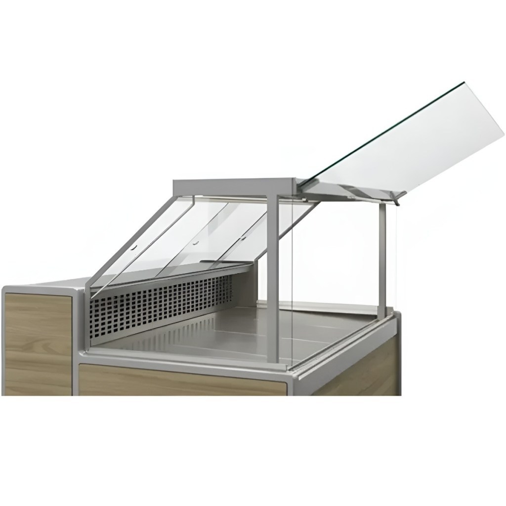 Подъёмное фронтальное стекло — облегчает доступ к продукции и упрощает выкладку.