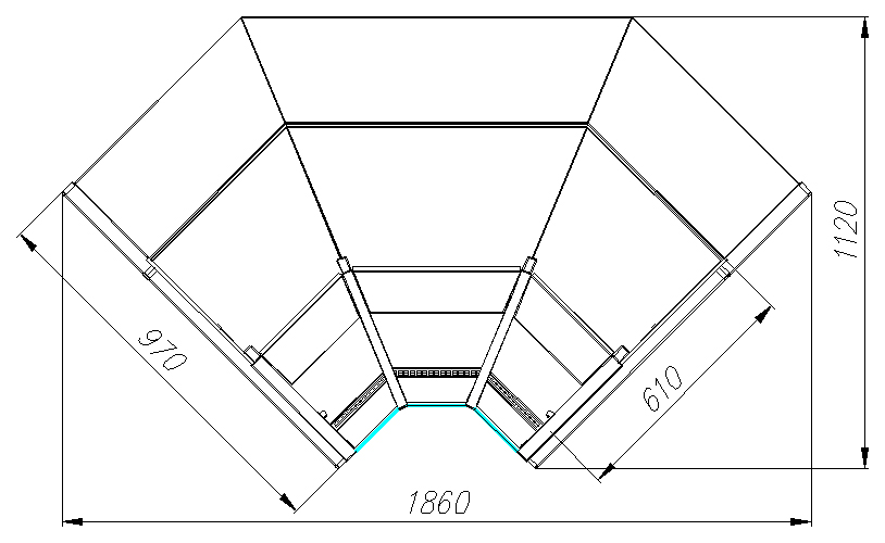 • Внутренний угол 90° — оптимальное размещение в торговом зале.